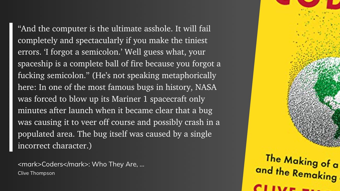 Clive Thompson vertelt in het boek Coders het verhaal van de programmeurs die onze digitale wereld hebben gebouwd, en hoe hun manier van denken bepaalt hoe technologie werkt en ons leven beïnvloedt. Van rebelse, idealistische pioniers in de jaren ‘70 tot de cynischere ‘move fast and break things’ jaren. Programmeurs bepaalden wat er gebouwd werd en hoe.